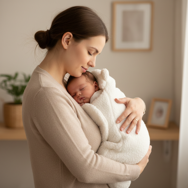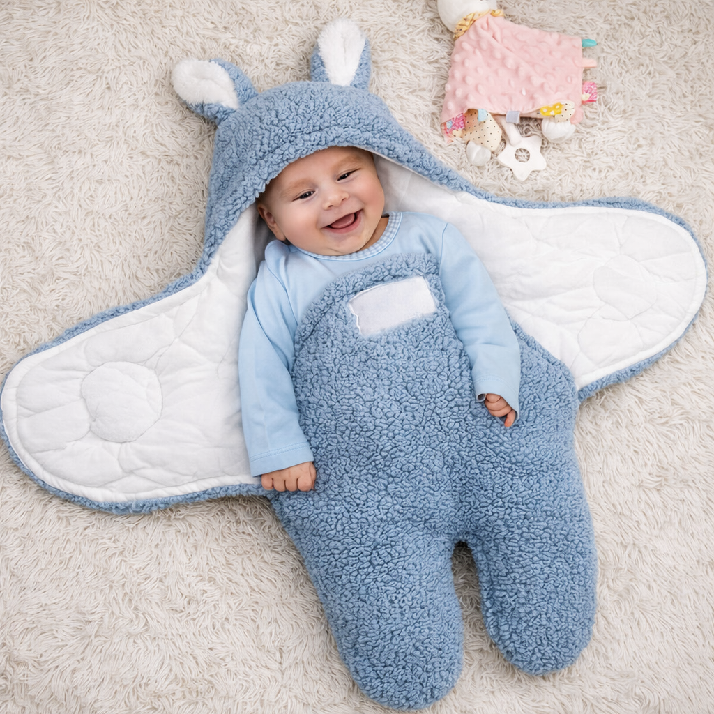Crafted from premium lamb fleece, our swaddle is breathable, gentle, and perfectly warm, ideal for sensitive newborn skin and peaceful sleep.